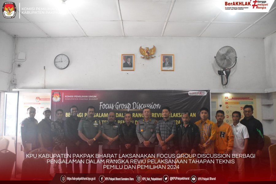 Njuahnjuah!!! #TemanPemilih, Komisi Pemilihan Umum Kabupaten Pakpak Bharat laksanakan Focus Group Discussion berbagi pengalaman dalam rangka reviu pelaksanaan tahapan teknis Pemilu dan pemilihan 2024 pada Selasa, 12 Agustus 2025 bertempat di Aula RPP KPU Kabupaten Pakpak Bharat. Kegiatan secara resmi dibuka oleh Basra Munthe Ketua KPU Kabupaten Pakpak Bharat, dalam sambutannya Basra menyampaikan bahwa Focus Group Discussion (FGD) dilaksanakan dalam rangka reviu pelaksanaan tahapan Pemilu dan Pemilihan Tahun 2024 untuk memperoleh tanggapan dan masukan maupun saran dari para peserta yang hadir sehingga diharapkan pada pelaksanaan Pemilu atau Pemilihan dimasa yang akan datang menjadi lebih berkualitas kemudian dilanjutkan pemaparan oleh Welly Imron Cibro selaku Divisi Teknis Penyelenggara Pemilu mengenai Pelaksanaan Pemilu dan Pemilihan Tahun 2024 tingkat Kabupaten Pakpak Bharat dan diskusi bersama para peserta yang hadir. Kegiatan dihadiri oleh, Seluruh Anggota KPU Kabupaten Pakpak Bharat, Bawaslu Kabupaten Pakpak Bhara, Forkopimda Kabupaten Pakpak Bharat dan Pimpinan serta lo Partai Politik tingkat Kabupaten Pakpak Bharat dan jajaran Sekretariat KPU Kabupaten Pakpak Bharat. #KPUMelayani #KPUPakpakBharat ....