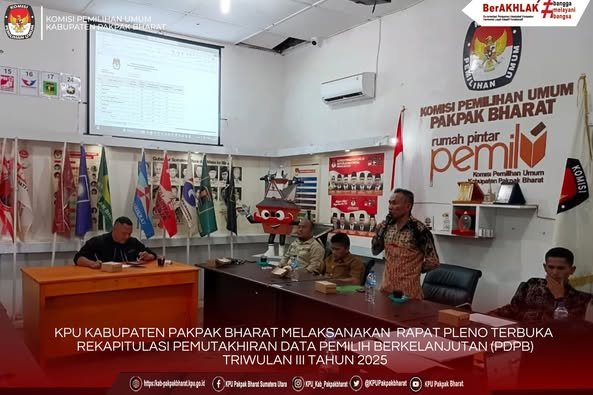 #TemanPemilih, Komisi Pemilihan Umum Kabupaten Pakpak Bharat melaksanakan Rapat Pleno Terbuka Rekapitulasi Pemutakhiran Data Pemilih Berkelanjutan (PDPB) Triwulan III Tahun 2025 pada 2 Oktober 2025 bertempat di Rumah Pintar Pemilu (RPP) KPU Kabupaten Pakpak Bharat.