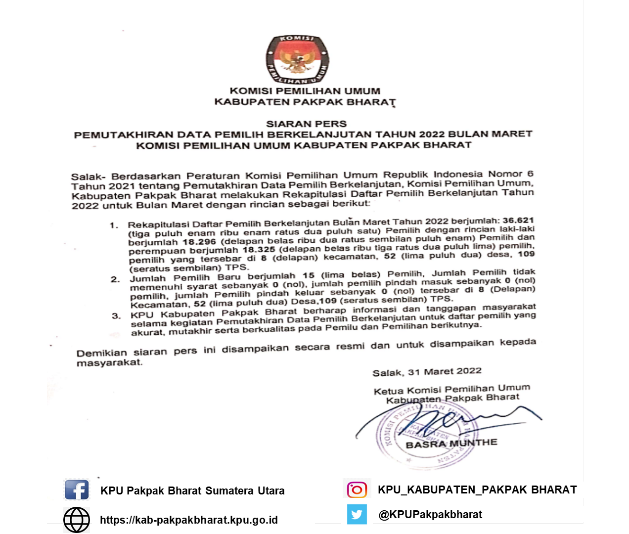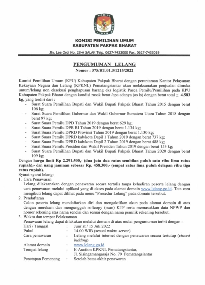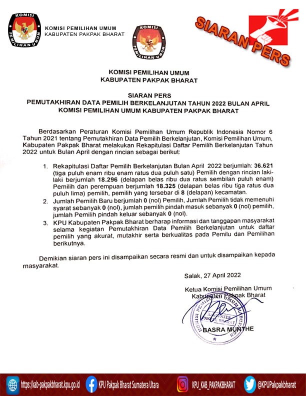 KPU Pakpak Bharat mengundang Bapak/Ibu Pimpinan Partai Politik untuk menghadiri "Sosialisasi PKPU Nomor 04 Tahun 2022 tentang Pendaftaran, Verifikasi dan Penetapan Partai Politik Peserta Pemilihan Umum Anggota Dewan Perwakilan Rakyat dan Dewan Perwakilan Rakyat Daerah".